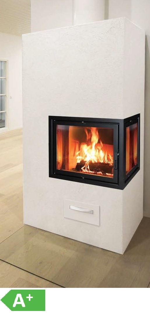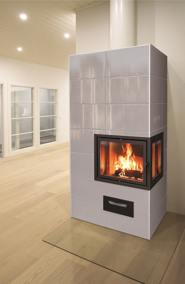 Fiona 85 is a clean-lined corner stove for any interior. It is possible to change the exterior of the fireplace stove with various tiling works.