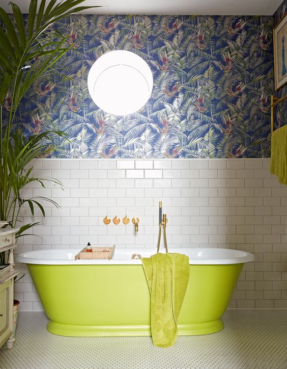 Kuigi vannitoad on tavaliselt väikesed, saad siiski muuta selle julgeks ja tõeliselt ainulaadseks. Vali julge värviskeem või sega omavahel erinevad värvid, mis isiklikult meeldivad. Siinses vannitoas on värvivalik maksimalismi stiili jaoks isegi natuke tagasihoidlik. Kasutatud on silmapaistvat tapeeti ning julge valik on kindlasti laimiroheline vann. Lintmani tootevalikust on ka täiesti võimalik tellida RAL värvikoodidega vanne – vali oma lemmik värv ning Lintman täidab soovi. Küsi täpsemalt klienditeenindajalt