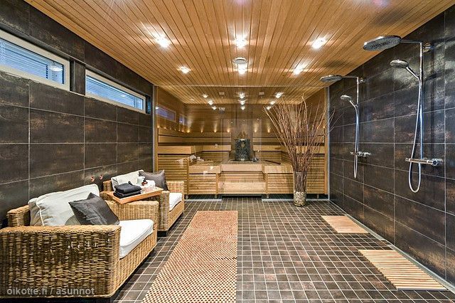 Elegantne toonide ja materjalide kombinatsioon tõstab selle sauna/duširuumi esile ning muudab luksuslikuks.