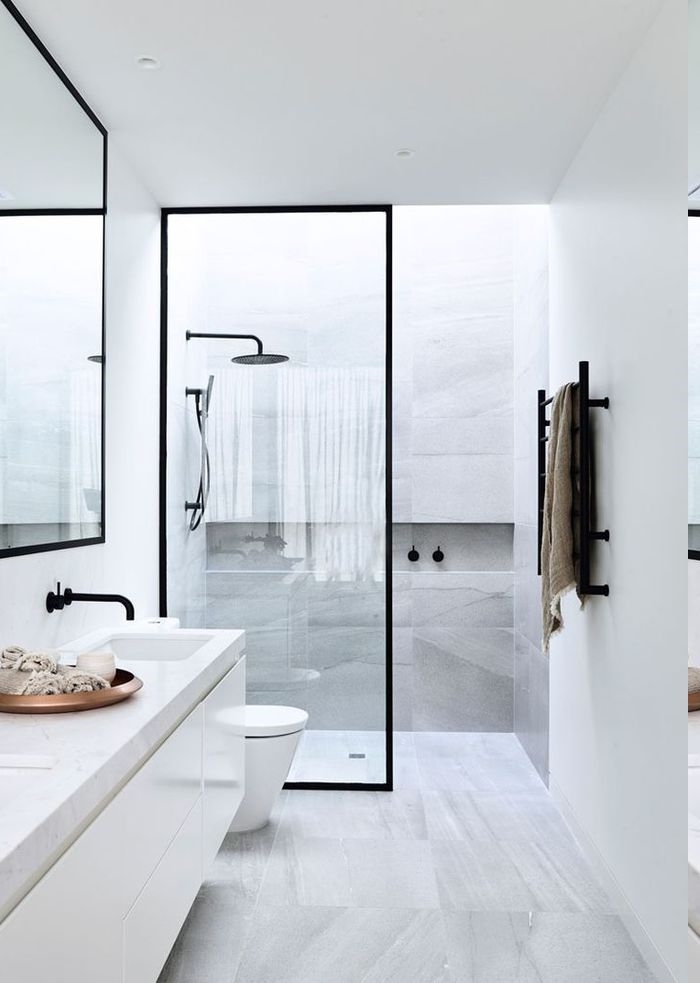 Modernne vannituba lihtsate ja selgete joontega ning kerge tööstusliku alatooniga. Seinanišid on väga populaarsed ja praktilised ning on leidnud ka siinses vannitoas endale koha.