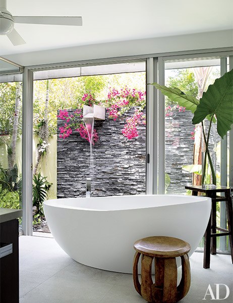 Naturaalne valgus vannitoas teeb ruumi koheselt hubasemaks. Suurim probleem suurte akendega on aga tihtilugu, et möödakäijad ja naabrid näevad sisse. Siinne lahendus on aga vägagi kaval: ehita vannitoa poolele maja lähedale lisasein, mis ühtlasi on kaunis dekoratsioon, välidušš, varjab võõraste pilkude eest ning laseb nautraalsel valgusel vannituppa tulla.