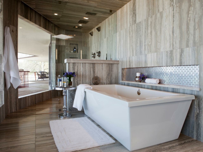Praktiline nipp on eraldada vannitoas dušinurk ning vann pooliku seinaga. Siin on ruum ohtra päevavalgusega, mis teeb ruumi koheselt ka hubasemaks. Erikujuline vann tuub ruumi isikupärasust.