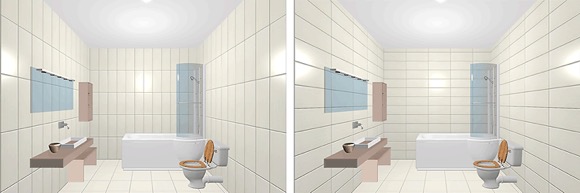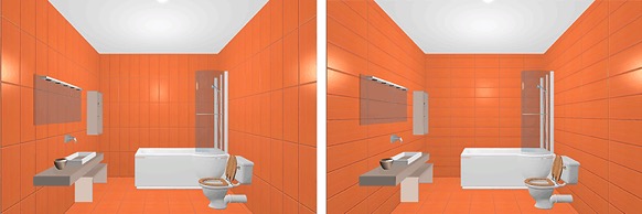 Kui ruum on piiratud, võid põrandale laotada suureformaadilise teemantmustri. See loob diagonaaljooned, mis visuaalselt muudavad ruumi suuremaks kui see tegelikult on. See võib tunduda vastuoluline, kuid väikestes vannitubades võib teatud olukordades suurte plaatide kasutamine toimida. Eelpool mainitud lahendus ei pruugi aga olla hea, kui on vaja ruumis luua põrandale kaldeid.