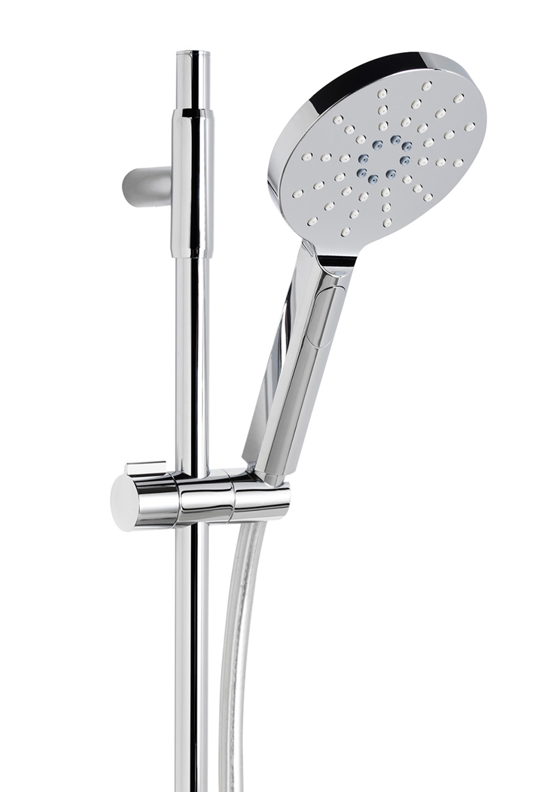 Valikus olev segisti Smart Mix on termostaatsegisti, millel on põletusi ennetav funktsioon. Komplekti kuulub Flex dušikomplekt, millel on AntiTwist dušivoolik. Kolme erineva funktsiooniga dušiotsik (Ø 120 mm). Seinakonsool 350-847 mm ning seebialus.