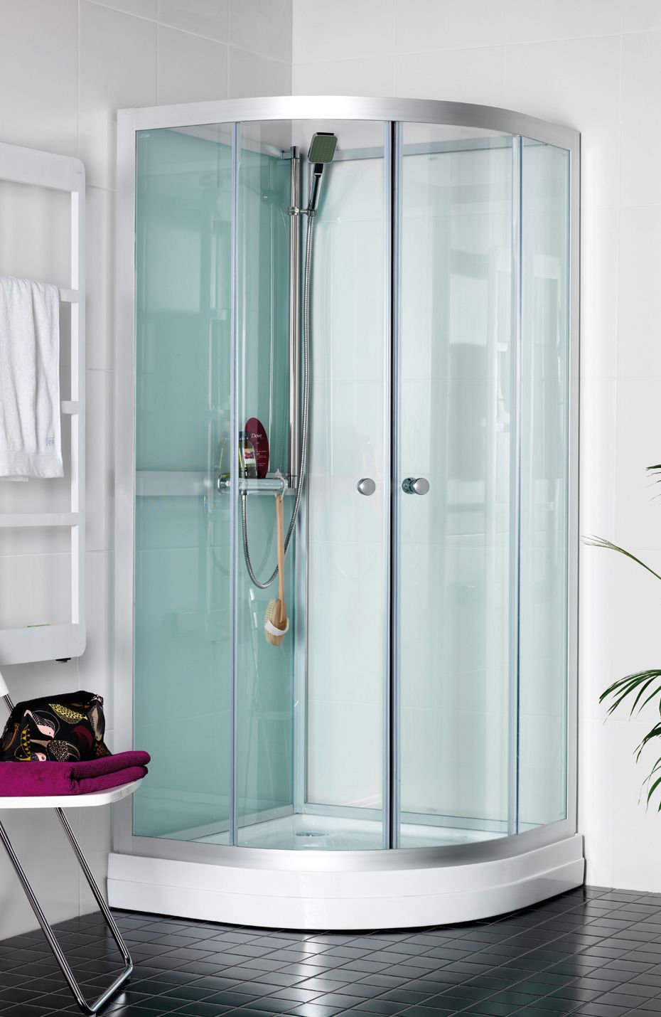 Hafa kaarjas dušinurk Polaris R on hõlpsasti kasutatav dušikabiin, millel on kaks ust. Karastatud 6 mm paksused läbipaistvad turvaklaasid ning hõbedased profiilid muudavad selle nurga stiilseks.