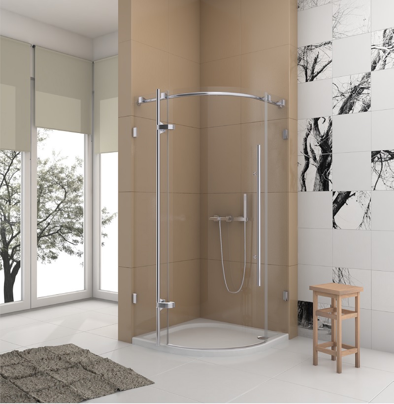 Minimalistlik kaarjas dušinurk, mis on saadaval kahe erineva klaasiga.