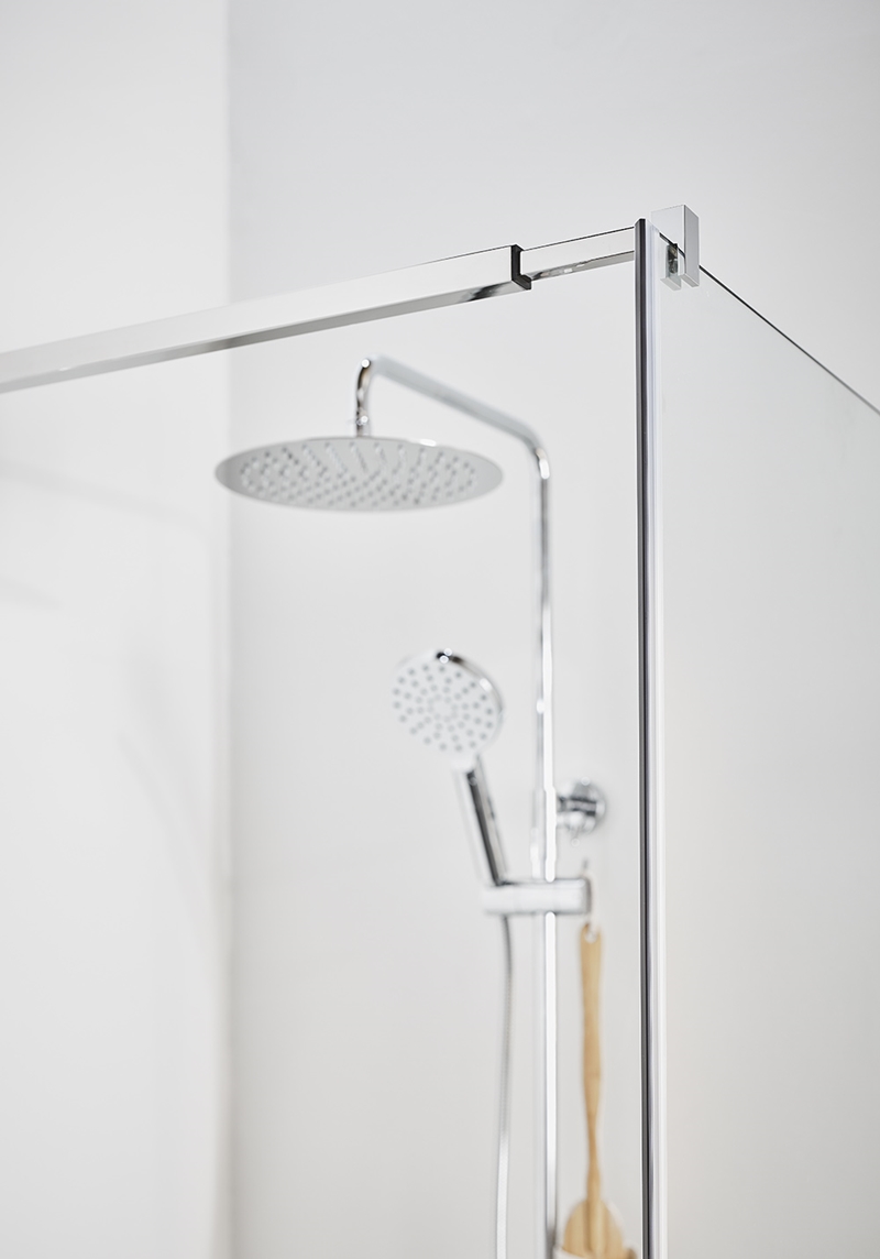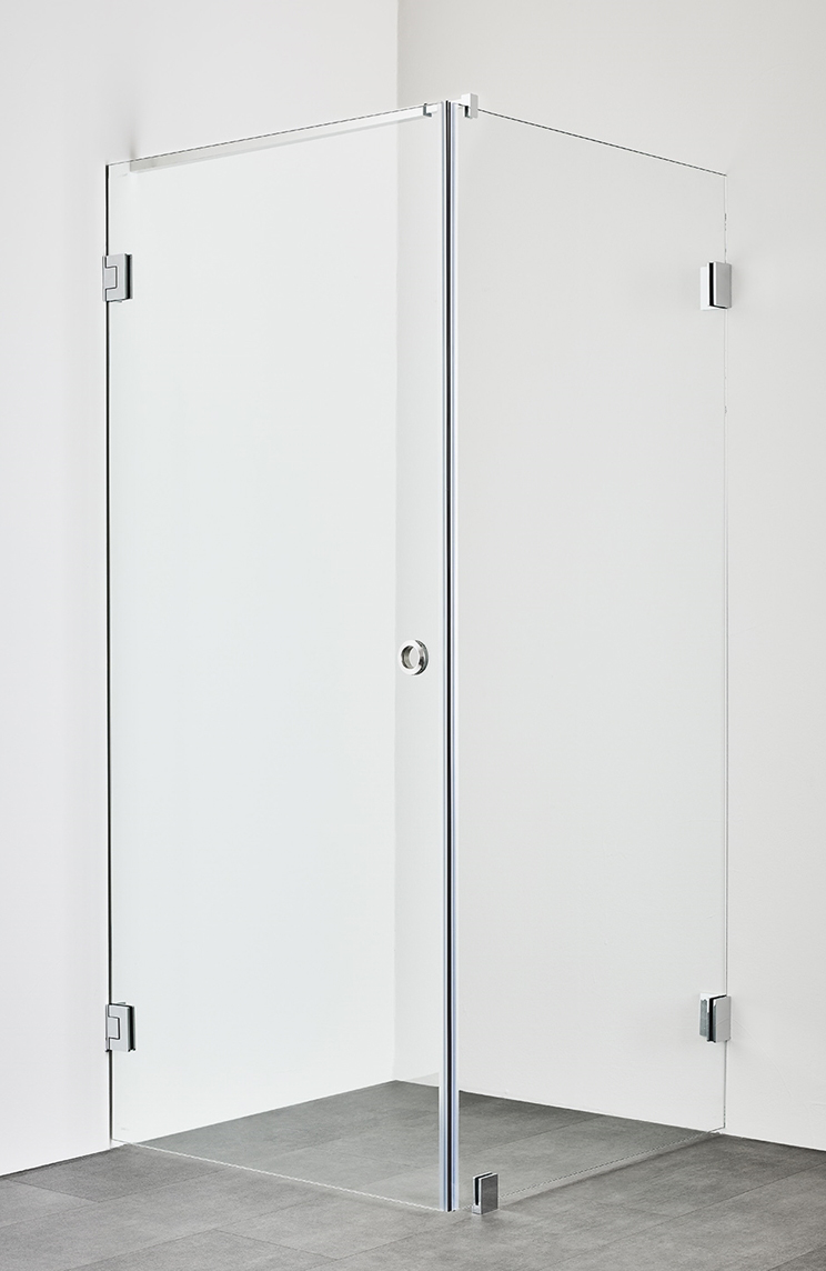 Eksklusiivne dušinurk minimalistlike profiilidega ja elegantsete käepidemetega. Valige kolme värvi vahel: kroom, matt must või messing. Suured klaaspinnad jätavad õhulise mulje ja jätavad vannitoas avara mulje. Dušinurgal on 8 mm karastatud läbipaistev klaas. Nurga moodustavad uks ja sein. Uks ja sein on pööratavad, nii et saate valida, mis seina uks asetada – paremale või vasakule.