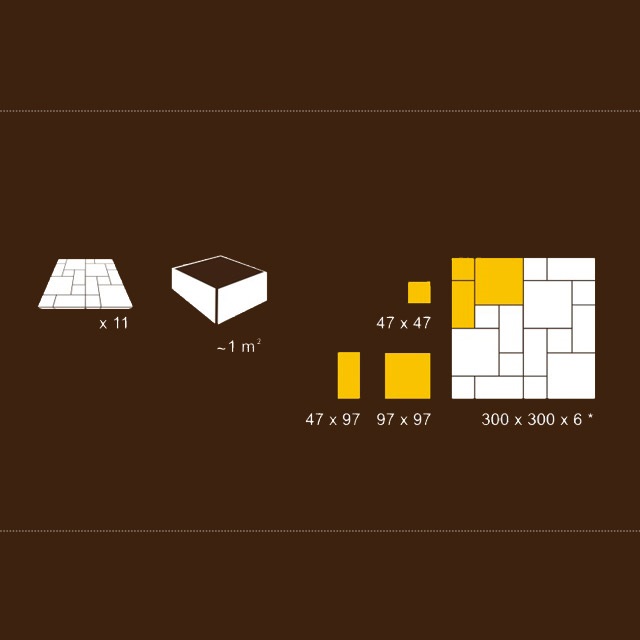 | Detaili mõõt | 4.7 x 4.7, 4.7 x 9.7, 9.7 x 9.7 cm |