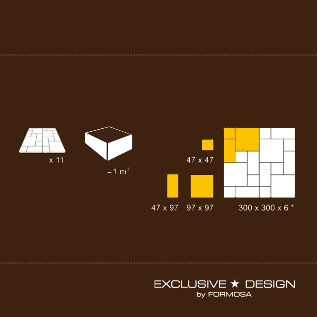 • Mõõtmed [mm]: plaat / detaili suurus: 300x300x6 / 47×47, 47×97, 97×97