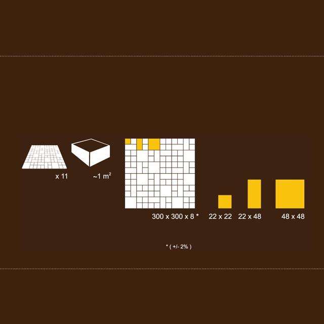 - Mõõtmed [mm]: plaat / detaili suurused: 300x300x8 / 22×22, 22×48, 48×48