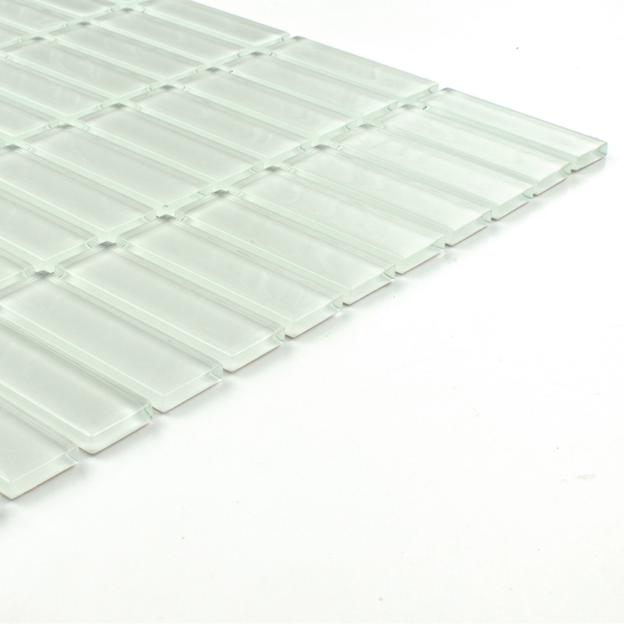 Valge klaasmosaiik, mis koosneb väikestest ristkülikukujulistest detailidest.