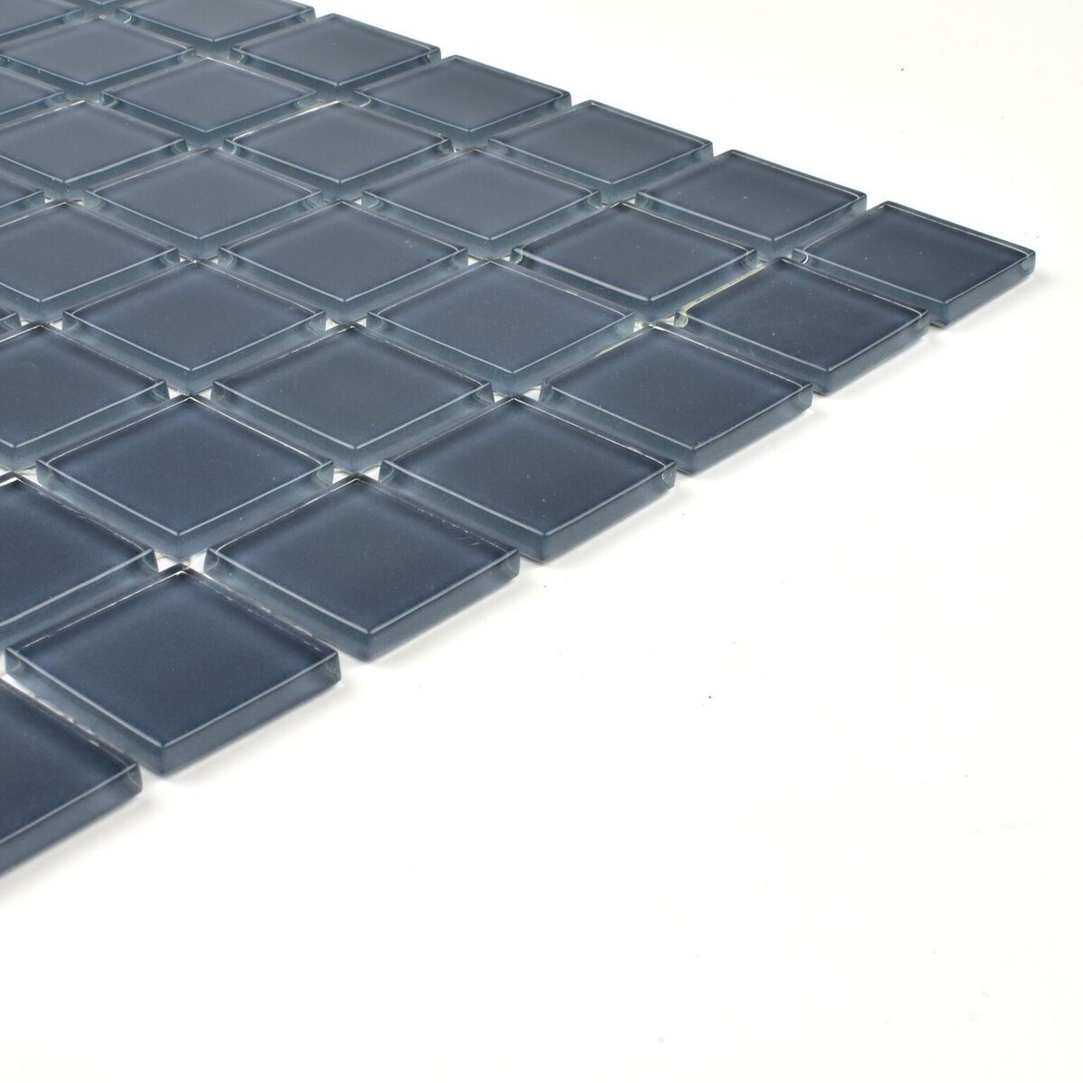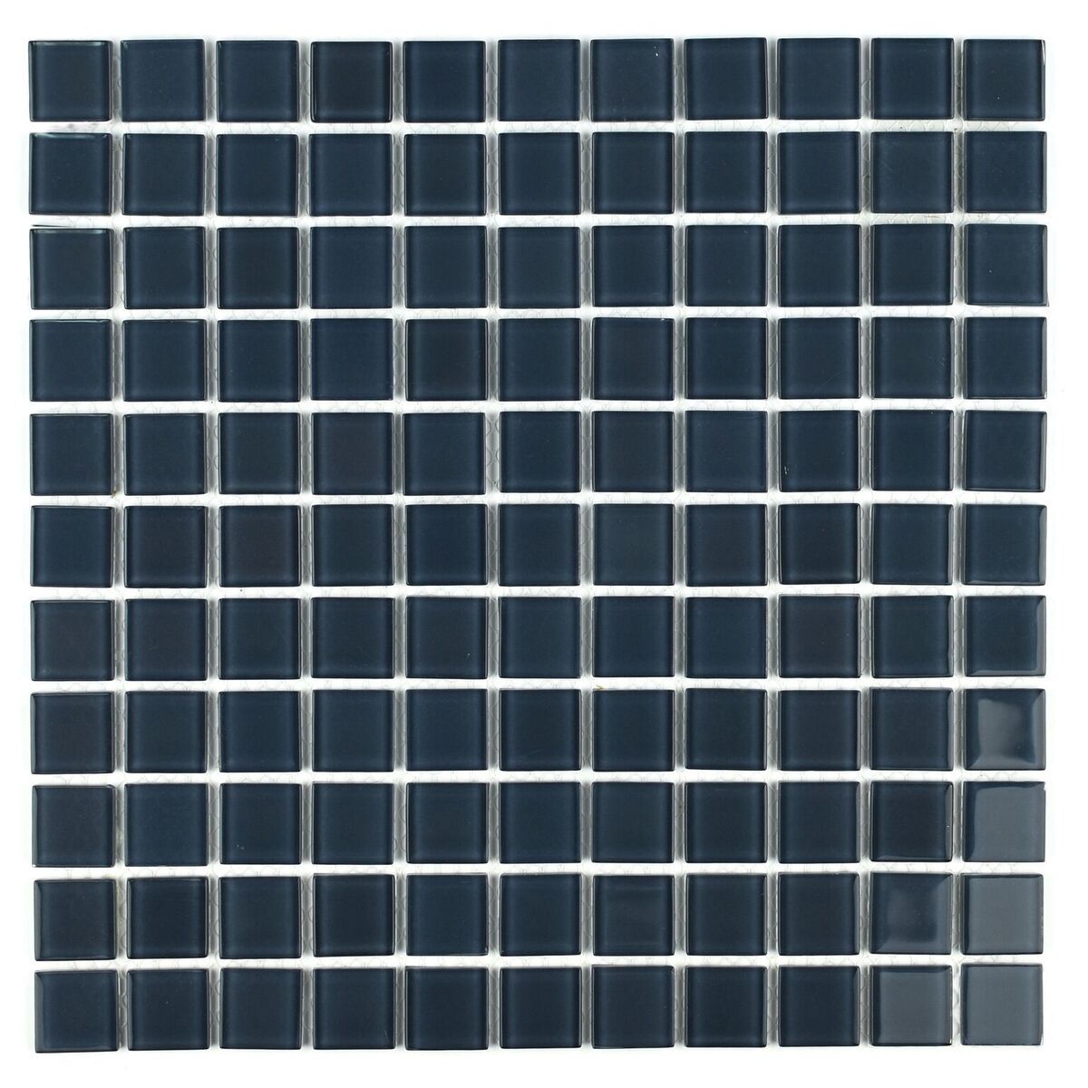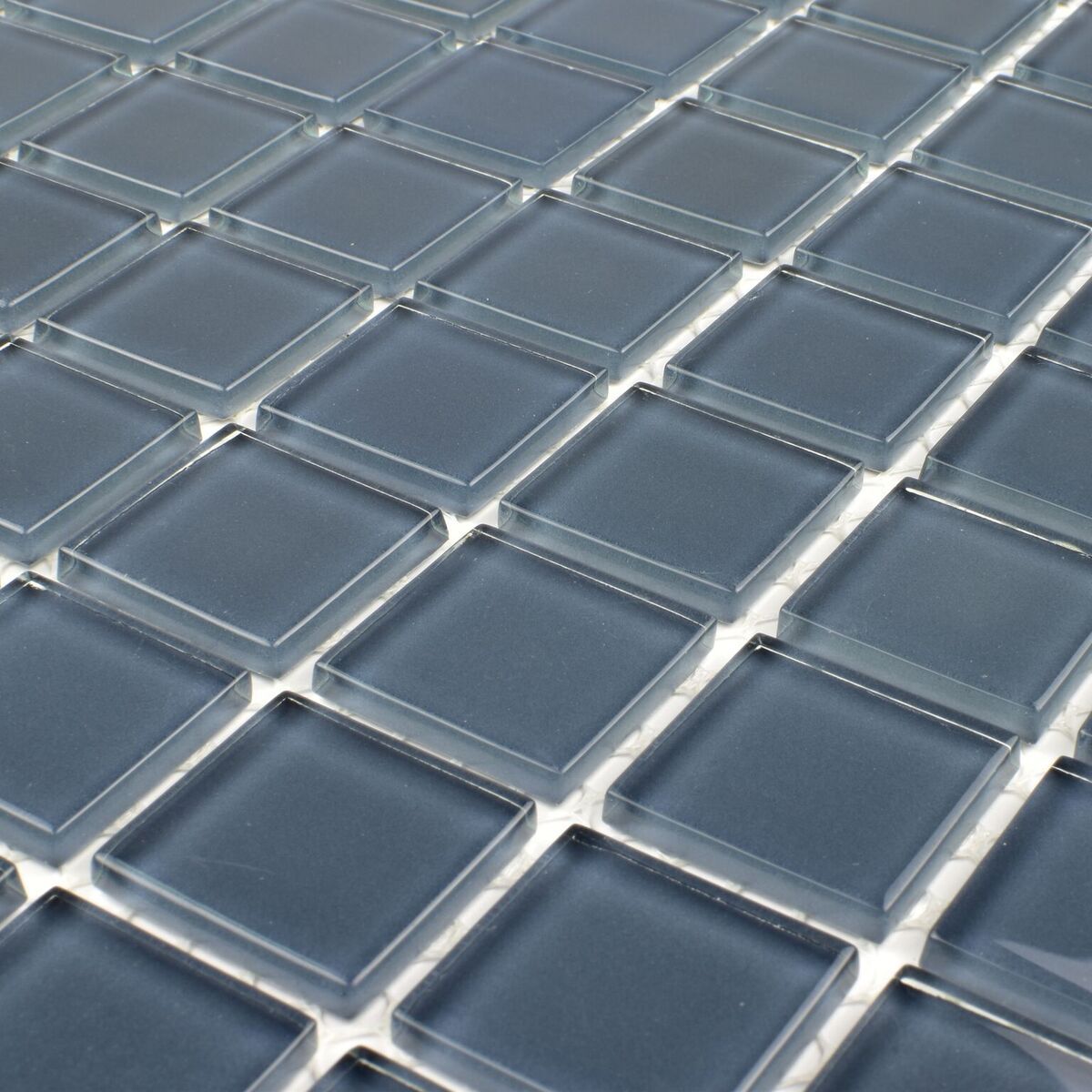 Grafiit-sinine klaasmosaiik, mis koosneb väikestest ruudukujulistest detailidest.