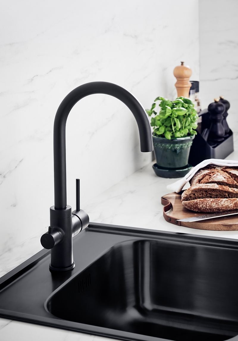 Elegantne musta värvi köögisegisti nõudepesumasina ventiiliga. Pööratav tila, vett säästev süsteem ning tööriistavaba paigaldus. Testitud ja sertifitseeritud SINTEFi poolt.