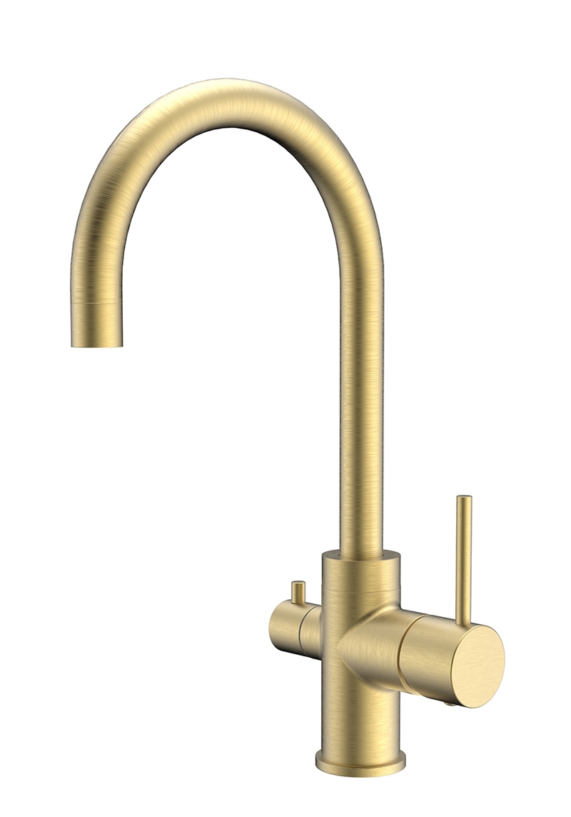 Elegantne messingu värvi köögisegisti nõudepesumasina ventiiliga. Pööratav tila, vett säästev süsteem ning tööriistavaba paigaldus. Testitud ja sertifitseeritud SINTEFi poolt.