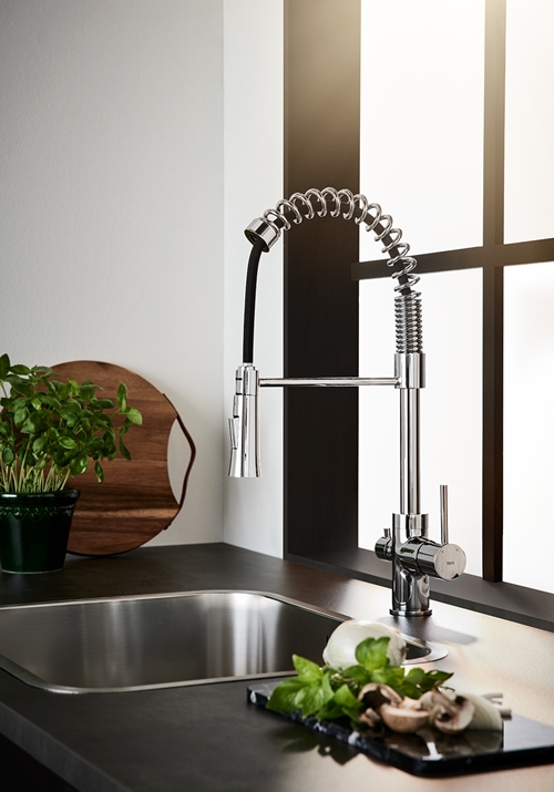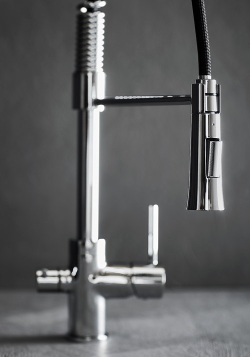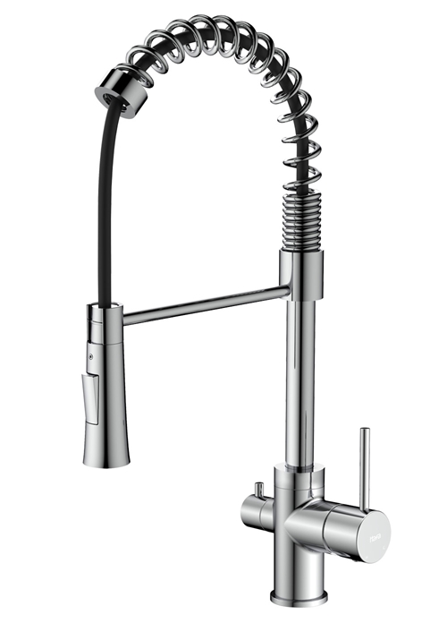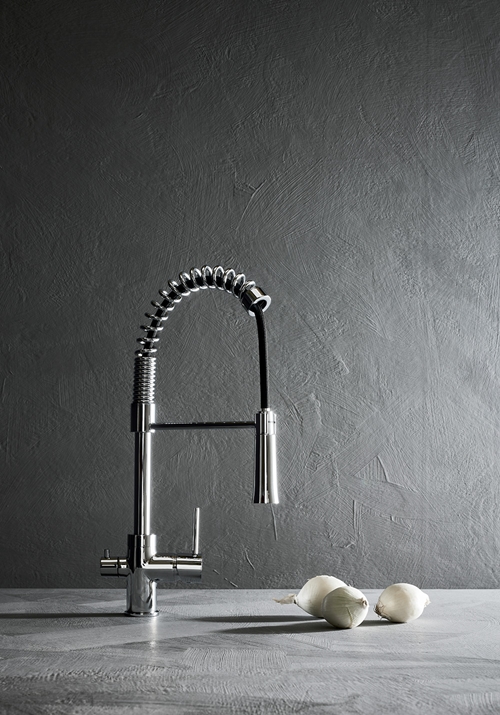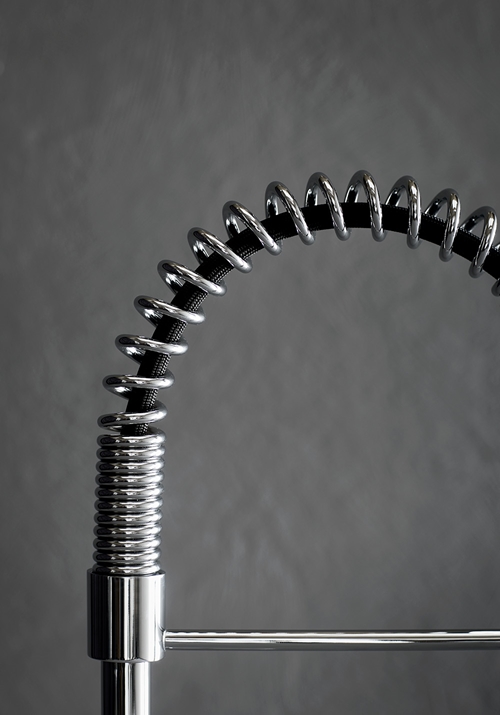 Praktiline väljatõmmatava tilaga köögisegisti. See on moodne segisti nedile, kes otsivad oma kööki kaasaegset tööstuslikku või bistroo stiili.