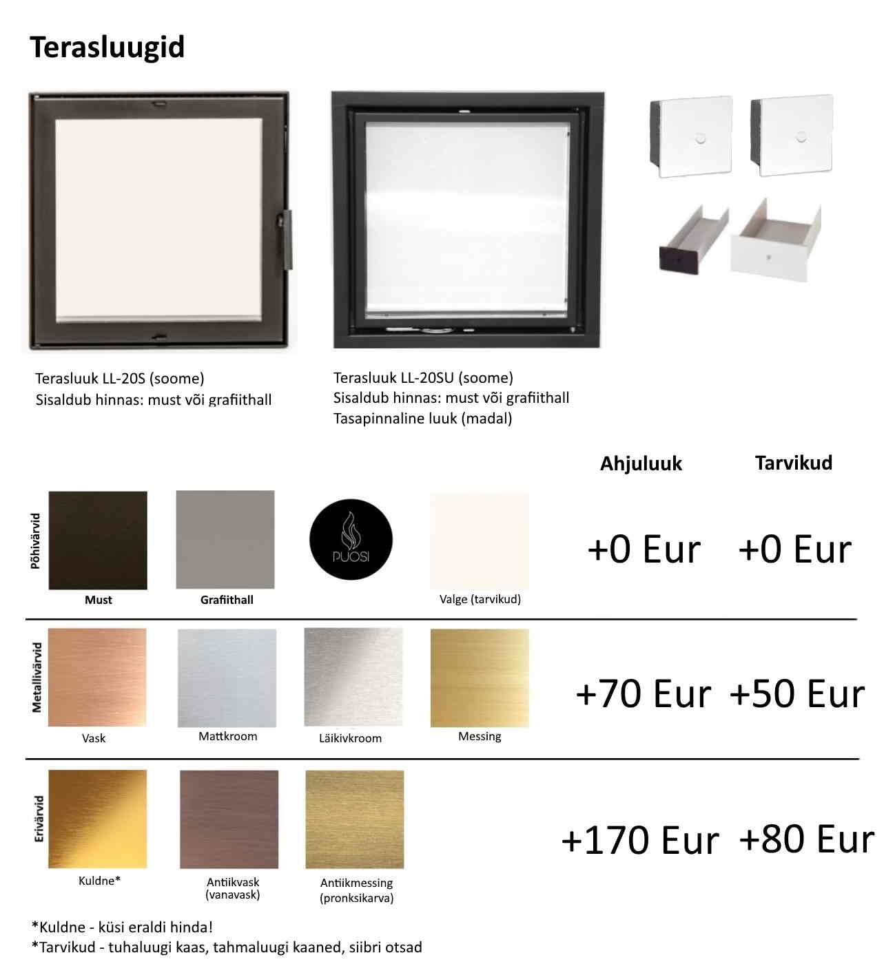 • Ahjuluuk: 410×410 mm avaga Soome (kroomitud matt, läikiv, must, vask, messing, kuld)