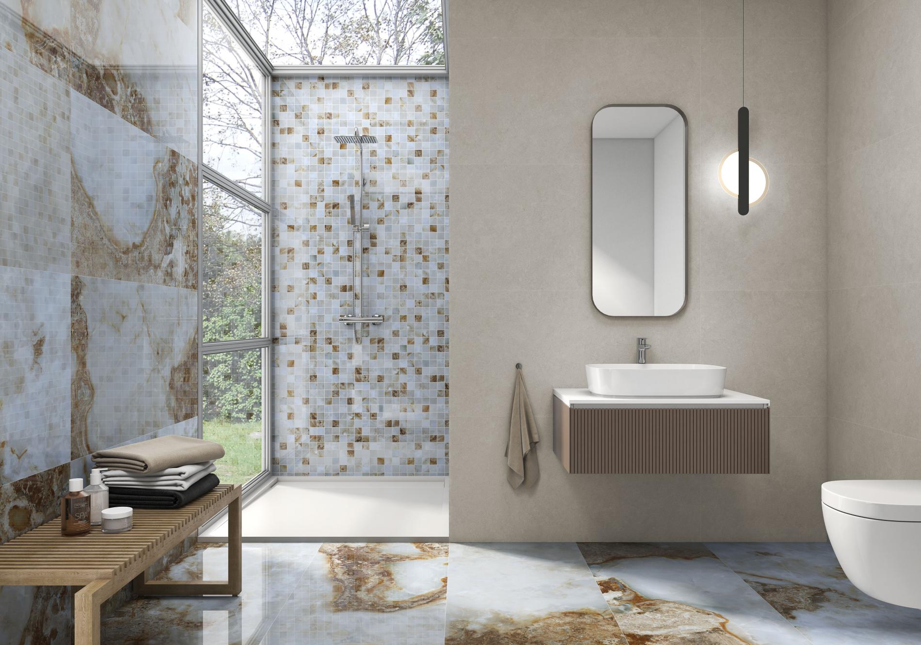 Mosaiikplaat Danae Esmeralda on tugev portselanmosaiik, mis sobib nii seina kui ka põrandale. Plaatidel on suur mustri variatsioon, mis jätab tõelise marmori mulje.