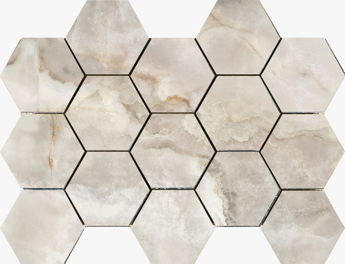 Mosaiikplaat Noor Almond Hex on tugev portselanmosaiik, mis sobib nii seina kui ka põrandale. Plaatidel on suur mustri variatsioon, mis jätab tõelise marmori mulje.