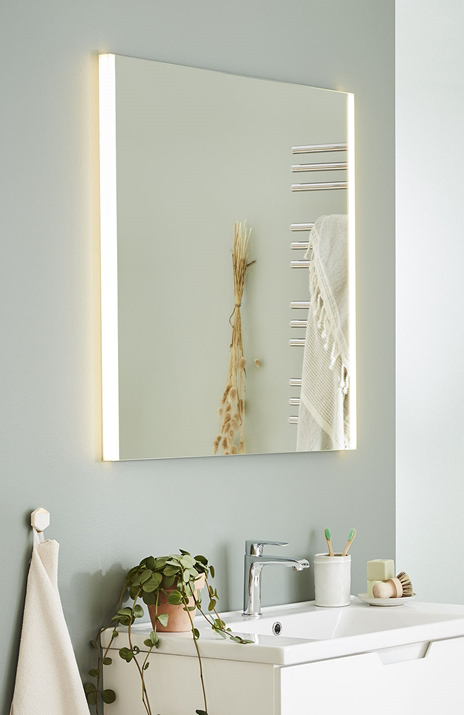 Noro Deco on integreeritud LED-valgustusega peegel. Saadaval mitmes erinevas suuruses. Valgus süttib kolmes erinevas suunas. Valgusallikad pole dimmerdatavad. Peegel sobib kokku Uno seeria vannitoamööbliga.