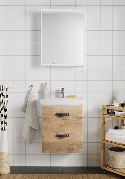 Sügava raamiga peegel Life koos mugav LED-valgustiga. Saadaval kolmes laiuses, mis sobivad kokku Life valamukappidega.