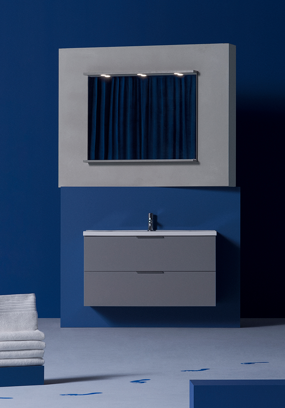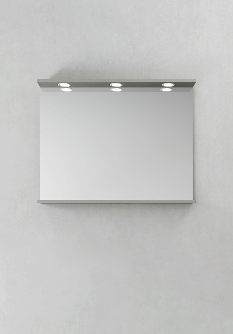 Peegel Store 900 on funktsionaalse valgustusega – süvistatud LED valgusriba või kohtvalgustid-, mis toodavad sooja valget valgust. Praktiline riiul ladustamiseks.