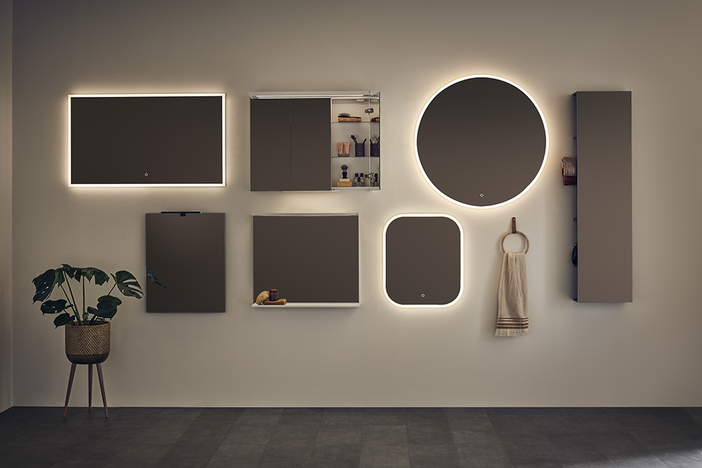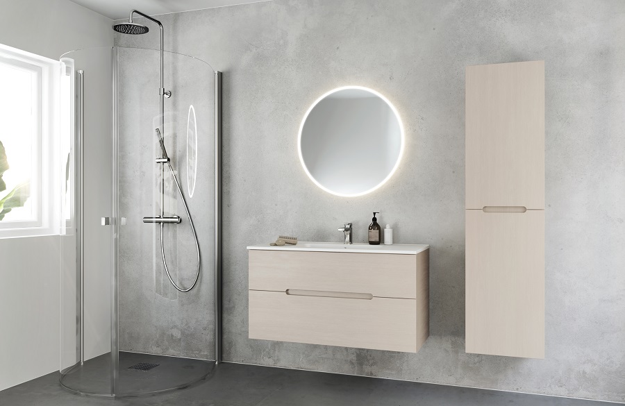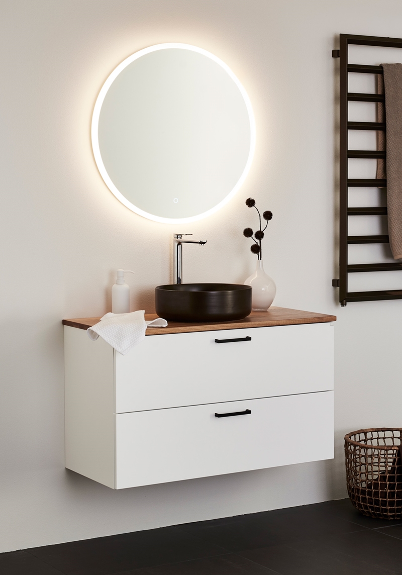 Stiilne ümmargune peegel dekoratiivse ja funktsionaalse LED-valgustusega. Puute funktsioon muudab peegli dimmerdatavaks. Peegel on saadaval kahes suuruses.