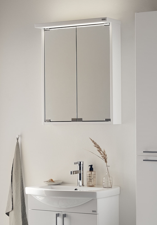 Alva peegel on saadaval mitmes mõõdus. Kõigil Alva peeglikappidel on soe LED-valgusti. Kapil on peegelid sees ja väljas ning kaks läbipaistvast klaasist riiulit. 230V elektriline pistikupesa.
