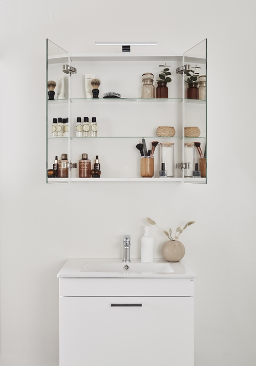 Peeglikapp Go kahepoolsete peegel ukstega. Saadaval valge ja mustana. Peegelikapp on saadaval neljas suuruses, sobitumaks Go valamukappidega. Juurde saab seotada sobiva LED-valgusti.