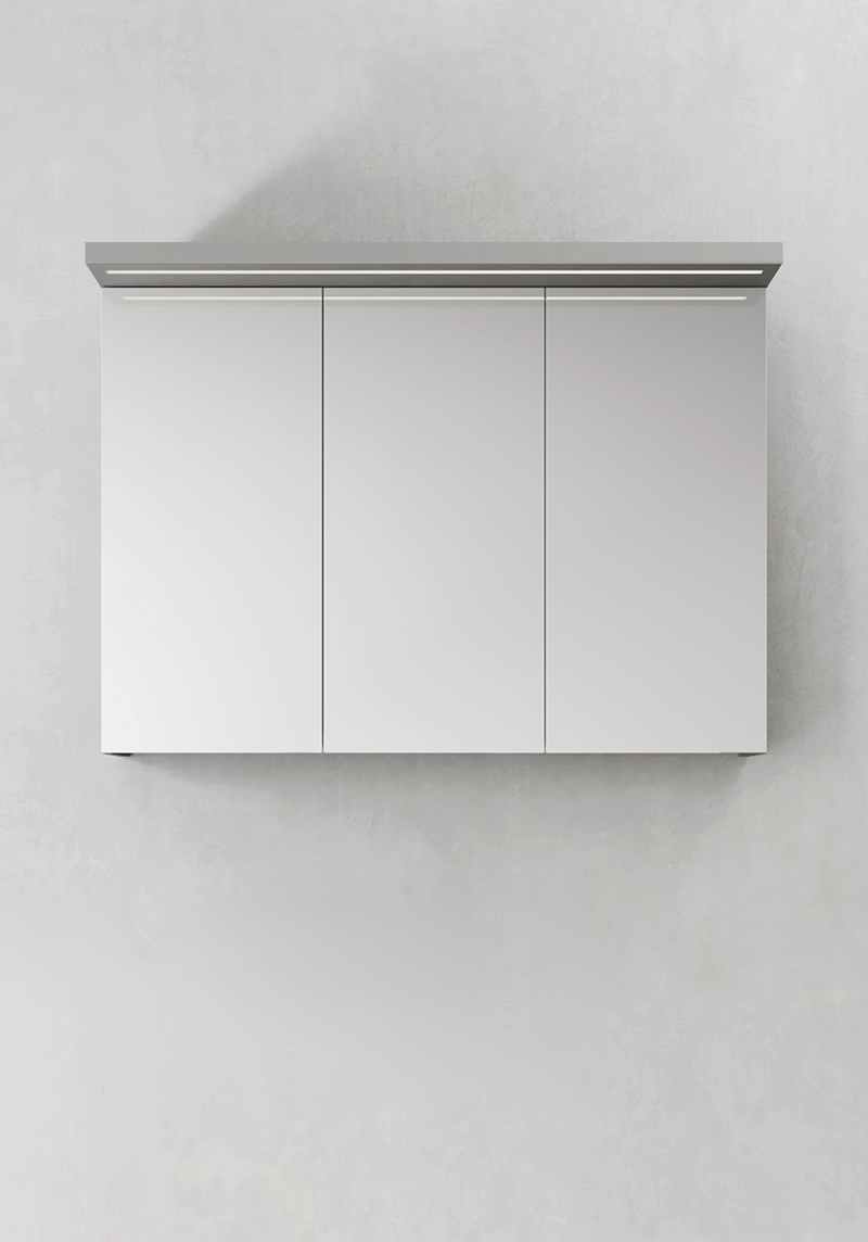 Peeglikapp Store 1000, mis on saadaval erinevates värvides. Funktsionaalse valgustusega – süvistatud LED valgusriba või kolm kohtvalgustit-, mis annavad sooja valget valgust. Pehmelt (soft-close) sulguvad uksed, millel on peegel sees ja väljas. Kapi sees on paremal toitepistik. Turvalised liigutatavad klaasist riiulid.
