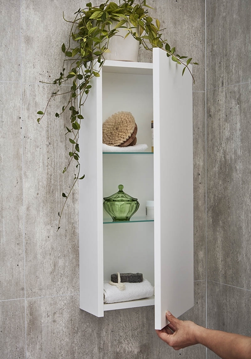 Noro väike vannitoa seinakapp City/Studio Wall, mis on saadaval neljas viimistluses – valge matt, valge läikiv , antrastsiithall ja hall matt. Kapil on pehmelt sulguvad uksed ning integreeritud käepidemed. Sees on reguleeritava kõrgusega klaasist riiulid. Uksed saab paigaldada vastavalt soovile, kas paremale või vasakule avanevaks.