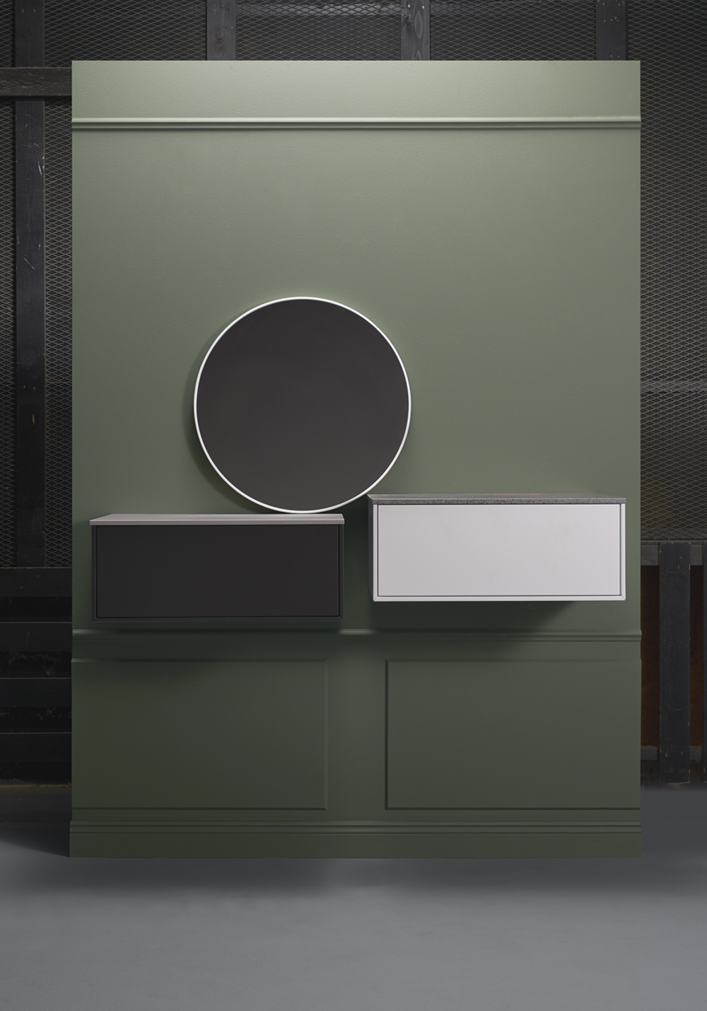 Hafa Edge küljemoodul koos tööpinnaga. Musta või valge kapi juurde võimalik valida erinevad tööpinnad. Sahtel “push-open” süsteemiga.
