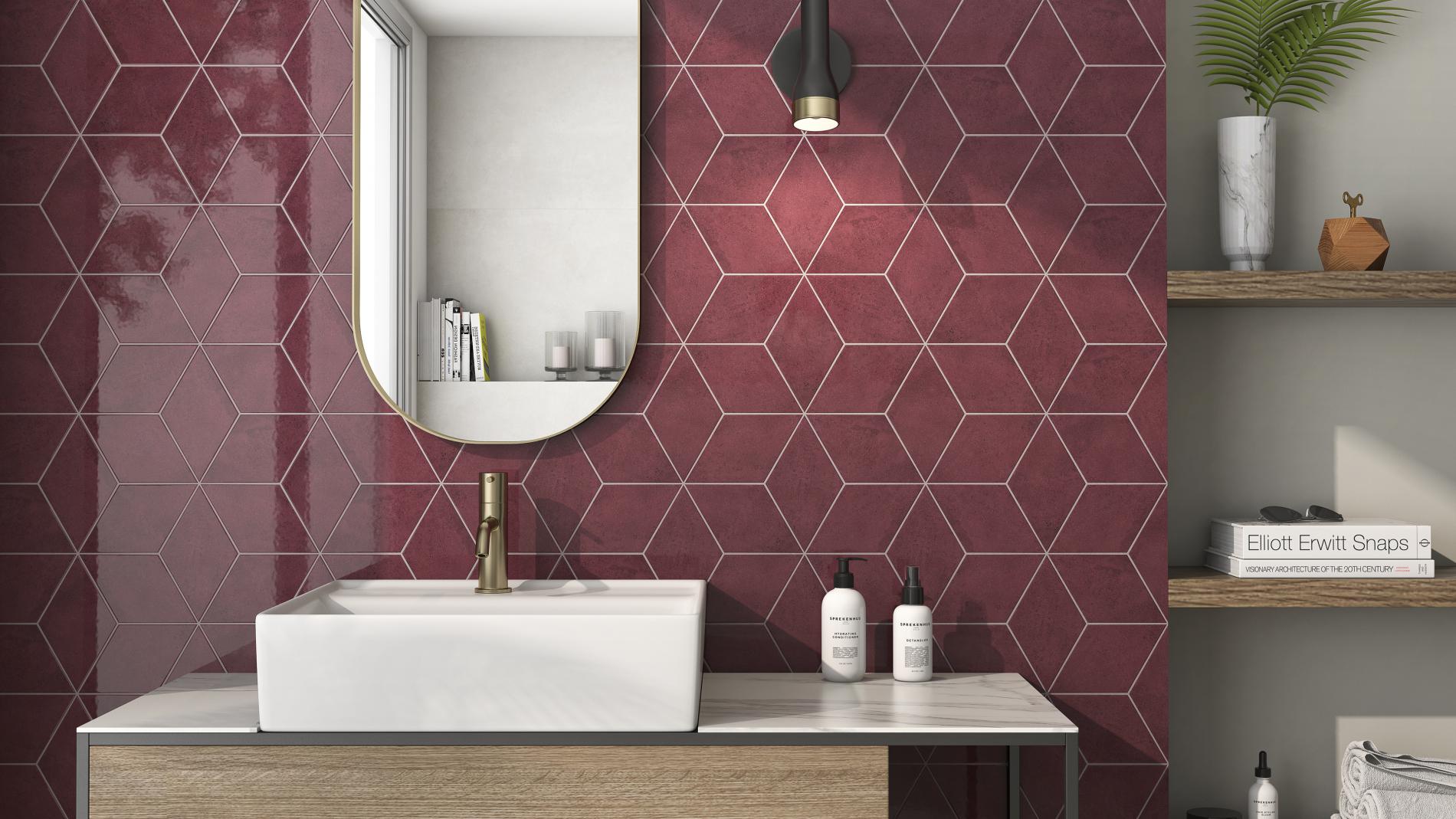 Läikiva pinnaga heksagoonikujuline keraamiline seinaplaat.