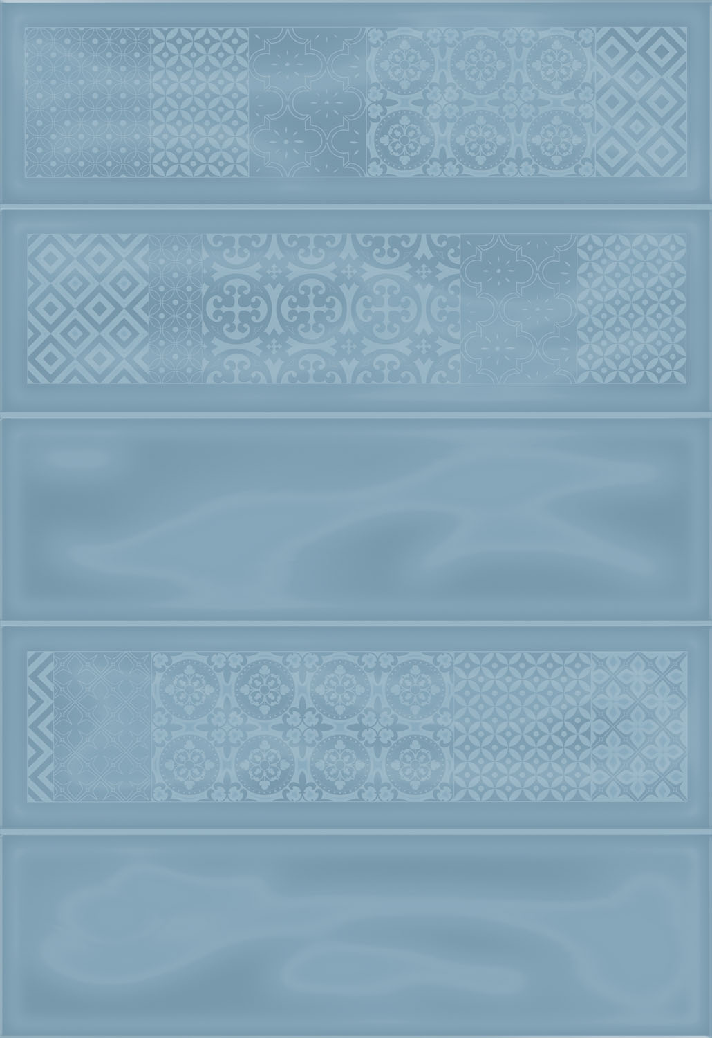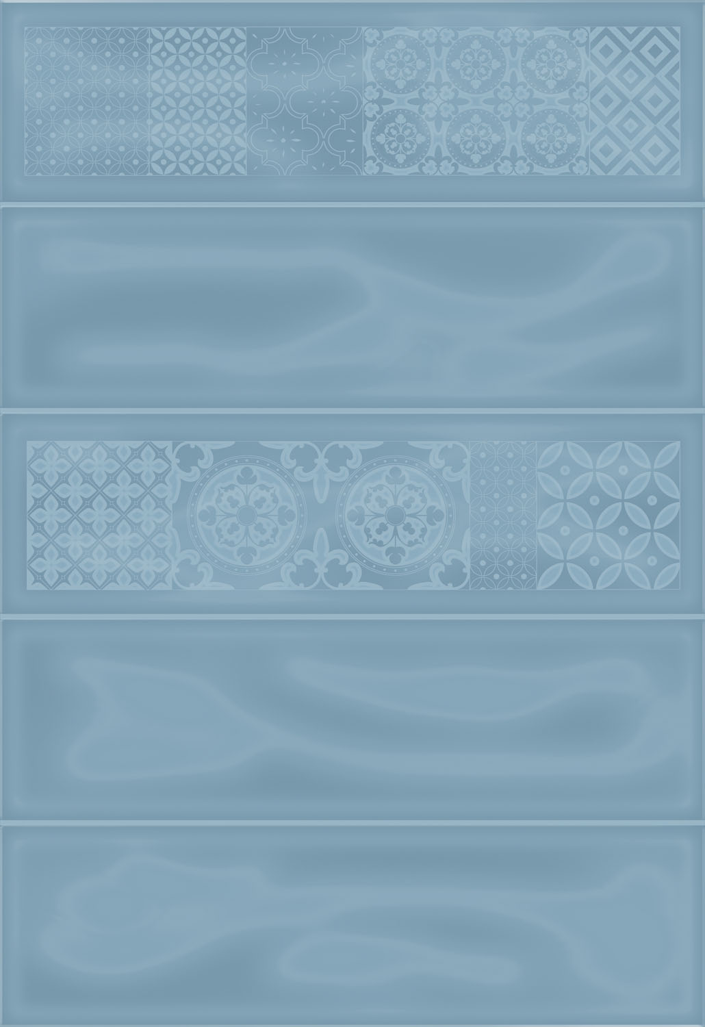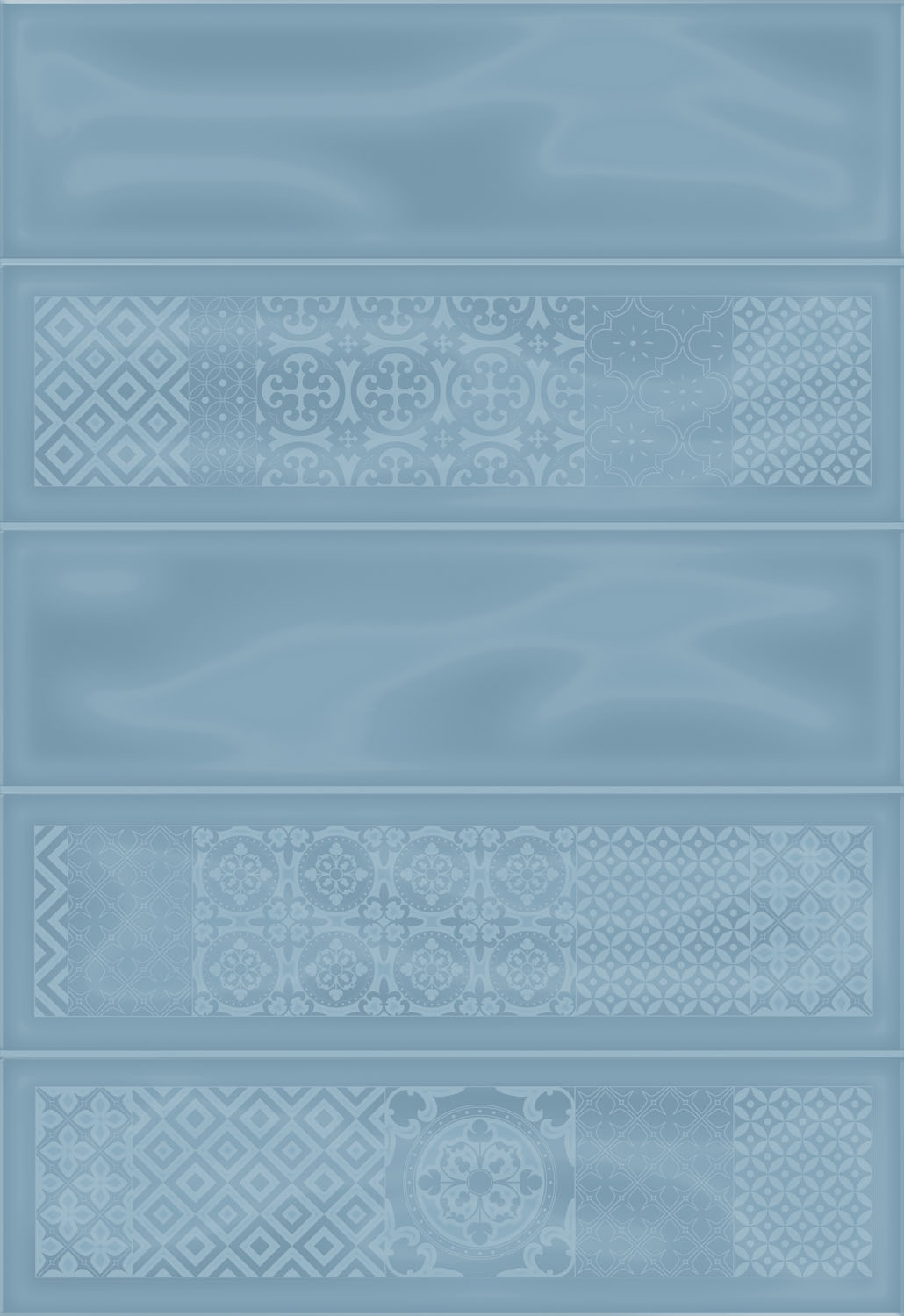 Helesinine läikiva pinnaga graafiliste kaunistustega seinaplaat Metro Blue 2D.