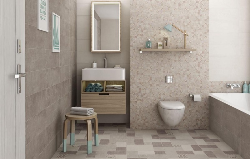 Poolmatt ehk satiin pinnaga beež seinaplaat, mida on lihtne kokku sobitada teiste Potsdam seeria keraamiliste plaatidega.