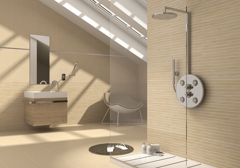 Matt beeži tooni seinaplaat, mida on lihtne kokku sobitada samasse seeriasse kuuluvate keraamiliste plaatidega.