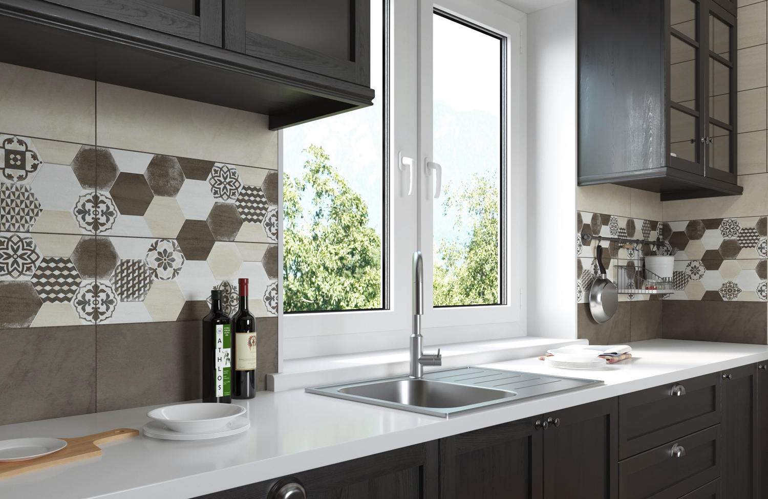 Beežides toonides seinaplaadid, mis on kombinatsioon modernsusest ja vintage hõngust. Pikliku kujuga seinaplaate ilmestab kärjemustriline seinaplaat, millel on vintage mulje.