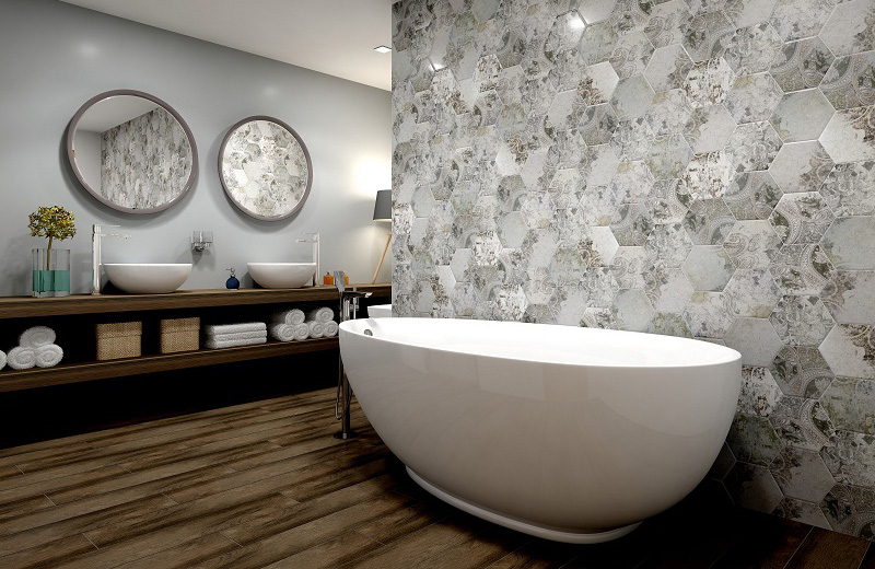 Modernsed heksagoon ehk kärjekujulised plaadid, kus hallid toonid loovad Skandinaavialiku meeleolu. Kombinatsioon tagasihoidlikust hallist toonist ning mustrilisest plaadist lubab luua erisuguseid ning silmapaistvaid ruume.