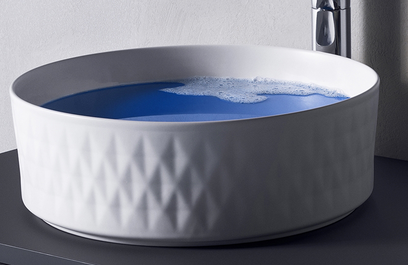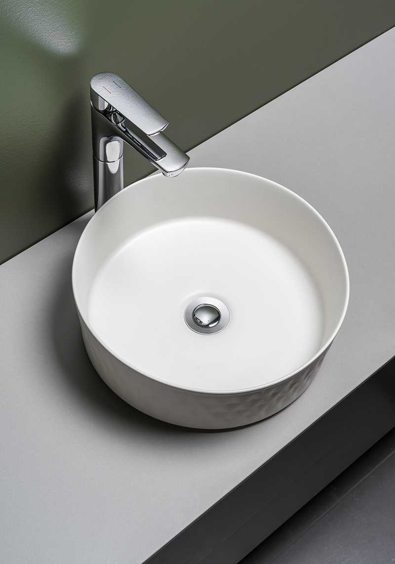 Pilkupüüdev reljeefse välispinnaga portselanist valamu, mille juurde saab valida erinevat värvi äravoole. Valamu sobib ideaalselt kokku Hafa vannitoamööbliga.