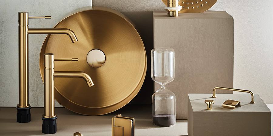 Õhuke pinnapealne roostevabast terasest valamu. Stiilne harjatud viimistlus. Valige kahe värvi vahel – messing või must. Kombineerige samas toonis kõrge segistiga.