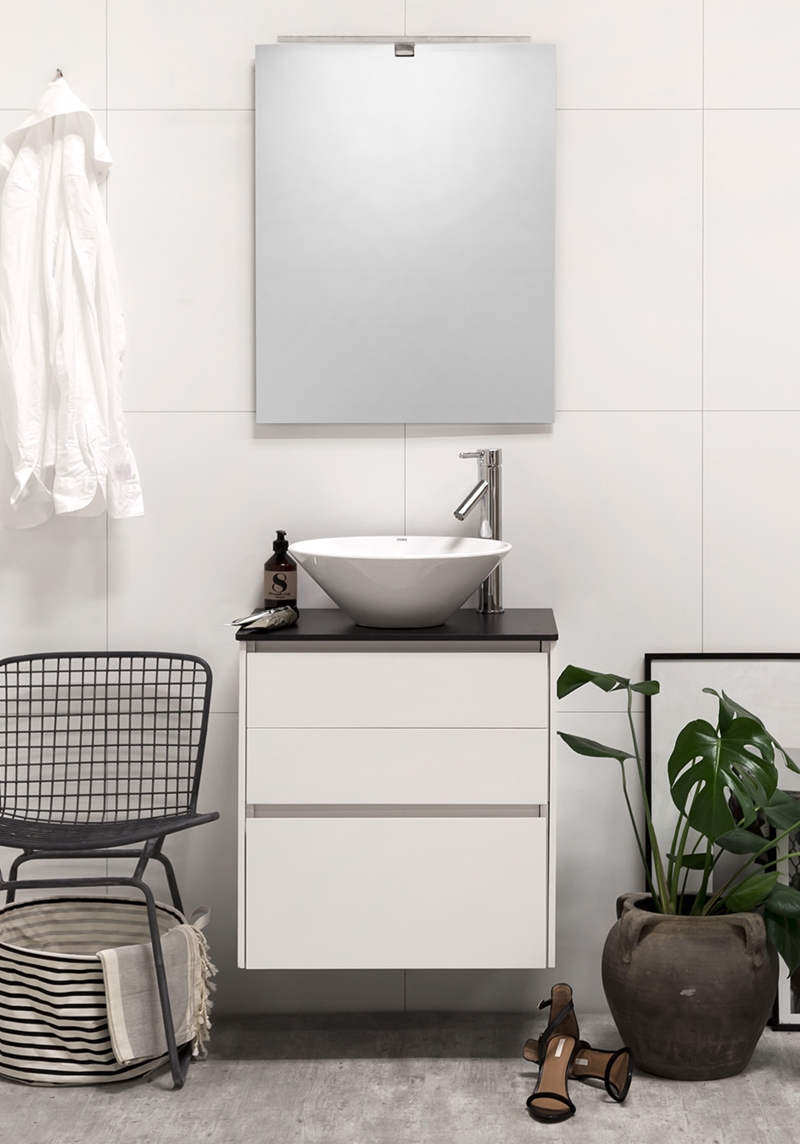 Noro Loop on pinnapealne portselan valamu, millel ei ole ülejooksu. Valamu juurde saab valida eri värvi äravoole. See ringikujuline valamu on elegantne ning sobib kokku Uno valamukapiga.