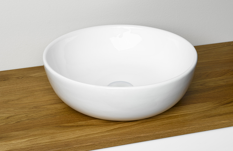 Pilkupüüdev ümar portselanist pinnapealne valamu. Valamu puudub ülejooks. Sobib kokku paljude vannitoakappidega, millel on tööpind.