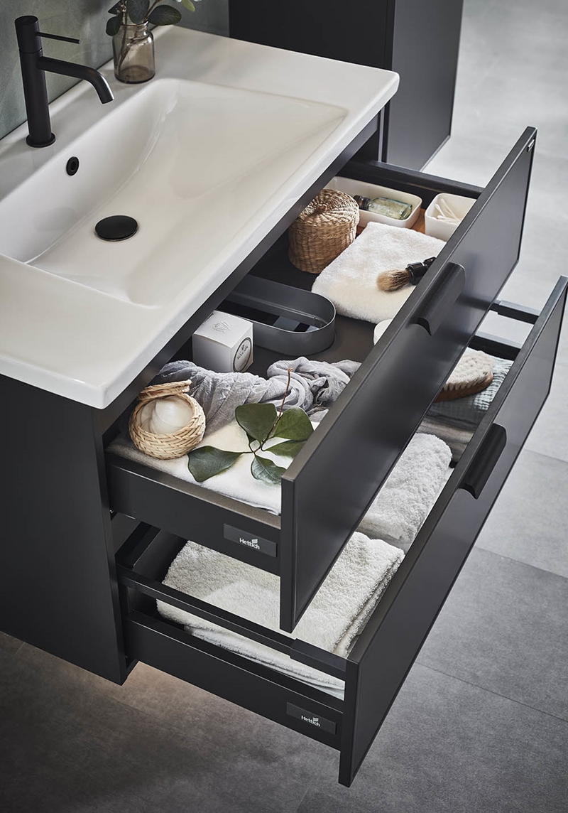 Täielikult väljatõmmatavad pehmelt sulguvad sahtlid. Lihtsaks paigaldamiseks ja reguleerimiseks sai Vogue reguleeritavad riputusklambrid. Sisaldab sahtli sisu ja eemaldatavat matti. Komplekti standard käepidemed Curve. Valikuse rohkem käepidemeid (hinnad võivad varieeruda). Küsi lisainfot klienditeenindajalt!
