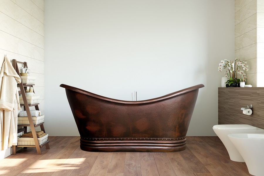 Eraldiseisev vann Caravelt Copper, mille mõlemad otsad on kaldseinaga ja vanni nii sise- kui ka välisküljed on mati viimistlusega.