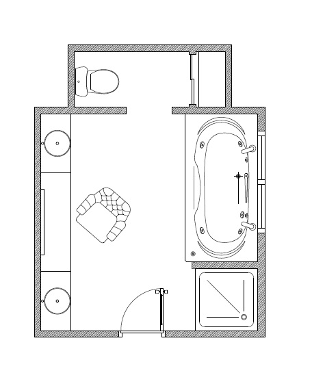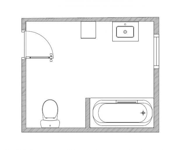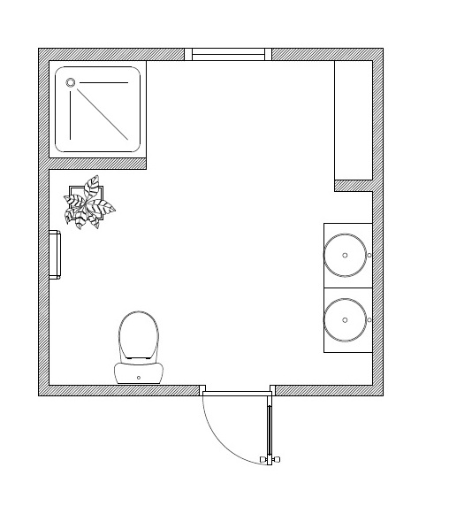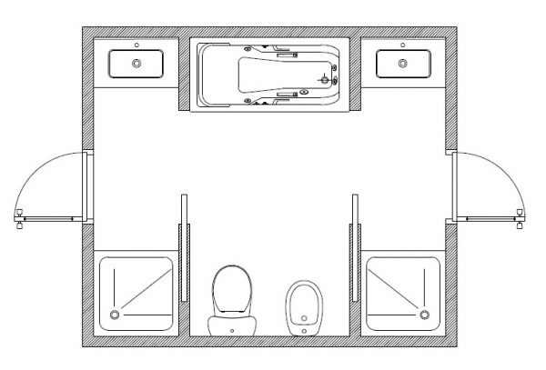 Sellel plaanil on kõik olemas: eraldi dušš, luksuslik vann eraldi nišis, kahene tualettlaud ja piisavalt liikumisruumi ning eraldi tualettruum.