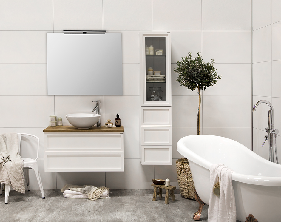 - Võimalikult lihtsate vormidega kapid ja riiulid, keerukamad vormid teevad vannitoa visuaalselt raskeks;